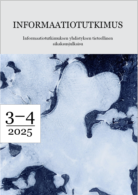 Vol 41 Nro 2–3 (2022)Huomio: Tässä numerossa oli toimituksen mekaanisen virheen johdosta mukana 2 abstraktia jotka sisältyivät sellaisenaan jo 2020 vuoden Informaatiotutkimuksen päivien materiaaleihin. Nämä ovat 2.11.2022 poistettu tästä numerosta, koska ne eivät sisälly 2022 I-päivien ohjelmaan. Kaikki edellisten I-päivien materiaalit löytyvät osoitteesta https://journal.fi/inf/issue/view/6793. Toimitus pahoittelee virheestä.